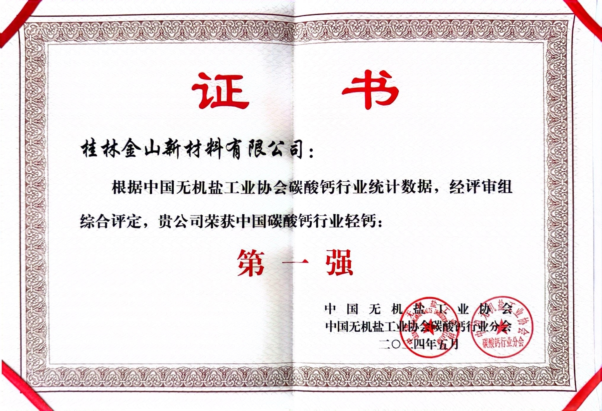 “中國碳酸鈣行業輕鈣第一強”